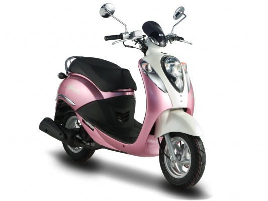 Скутер Sym Mio является более современным вариантом по сравнению с ретроскутером Sym Fiddle, хотя он также выполнен в стиле "ретро". В качестве силового агрегата использован четырехтактный двигатель рабочим объемом 50 или 100 см3. На колесах могут устанавливаться как барабанные, так и дисковые тормоза.